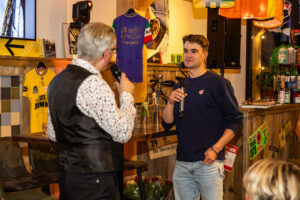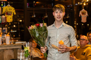 Geluidsman Joris de Mönnink maakte bij de prijsuitreiking van de Brabantse Renner/Renster van het Jaar verkiezing op 17 december in Village Départ een opname van de interviews van microfonist Rien van Horik met de aanwezige prijswinnaars Damy van den Bogaard, Lonneke Heesemans, Matt Roijackers, Finn Bastiaanssen, Martijn Braspenning, Bas van Heeswijk en Roan Konings.