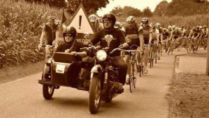 De fietsen zijn van voor 1987, hebben géén klikpedalen, de versnellingen zijn niet verstelbaar aan het stuur maar aan het frame(of bij sommige heel oude fietsen wel aan het einde van de stuurbocht), de remkabels lopen boven het stuur langs. De kleding is een wollen koerstrui en (zwarte) broek, witte sokken en zwarte schoenen. Op zich is dat al prachtig om te zien.