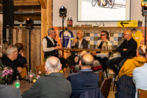 Tijdens de Brabantse Wieleravond in Village Départ werden de prijzen uitgereikt aan de Brabantse renners/rensters van het Jaar Damy van den Bogaard, Lonneke Heesemans, Finn Bastiaanssen, Matt Roijackers, Martijn Braspenning, Bas van Heeswijk en Roan Konings. Ook vertelden youngsters Joppe de Heij en Hidde van Veenendaal over hun eerste ervaringen in het begeleiden van jonge renners. Tot slot gingen Adrie van Houwelingen, Twan van Gestel en Angelo van Melis in gesprek met Rien van Horik over talentontwikkeling met het oog op de toekomst. Fotograaf Peter van Rooij was erbij en maakte weer een aantal fraaie foto’s.