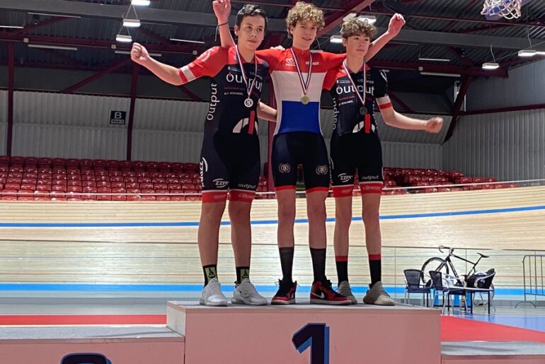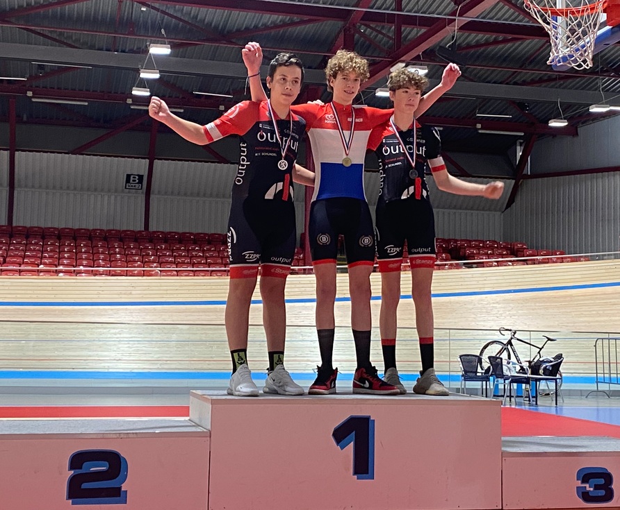 Het kampioenschap werd verreden over 4 onderdelen: 200 m sprint, sprint serie. keirin serie en de scratch. Op alle onderdelen werd Andries tweede. Cas werd vierde in de sprint serie en in de overige onderdelen derde. Andries behaalde de zilveren medaille terwijl Cas het brons won. Bij de nieuwelingen wist Lucas Demuyt een vijfde plek te bemachtigen na vier onderdelen. (Foto WV Schijndel)