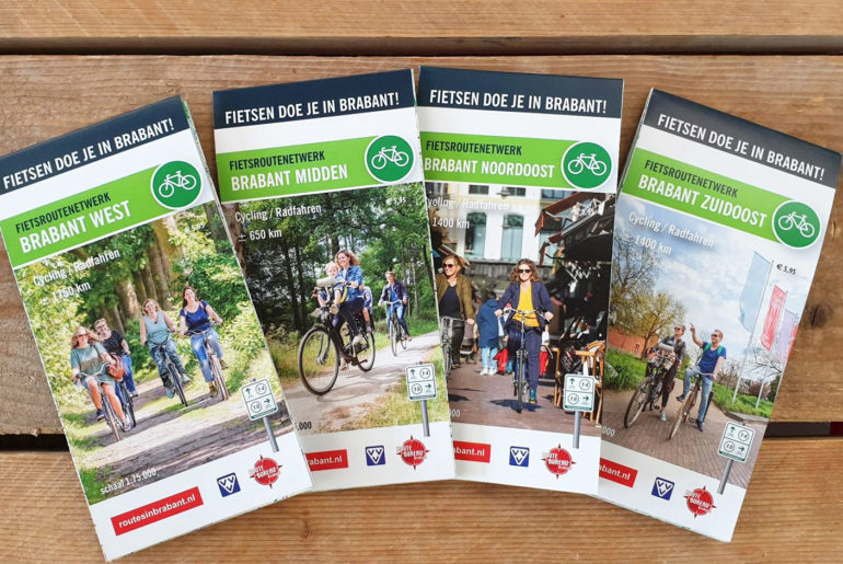 De vier fietskaarten tonen het volledige fietsnetwerk in Brabant, goed voor bijna vijfduizend kilometer fietsplezier. Ze zijn onderverdeeld in vier regio’s: West-, Midden-, Noordoost- en Zuidoost-Brabant. De fietskaarten zijn uitgevoerd op extra stevig papier en bevatten elk een gedetailleerde routekaart met schaal 1:75.000.