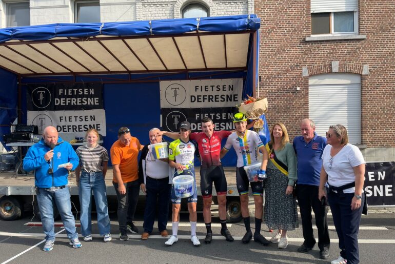 Na diverse aanvalspogingen wist hij zo.’n kilometer voor het einde weg te rijden en solo te finishen voor de Belgen Kyano Cottignies en Valentin Pierre Petillon.