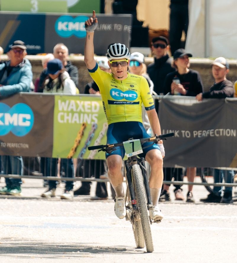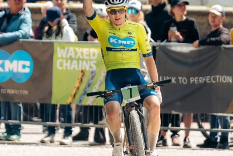 KMC Ridley renner Tom Schellekens uit Schijndel heeft afgelopen weekend in het Duitse Heubach een internationale MTB-wedstrijd voor beloften op zijn naam geschreven. Aan de finish had hij een mooie voorsprong op de Oekraïner Oleksandr Hudyma en de Zwitser Nicolas Halter. Rens Teunissen van Manen kwam als vierde over de meet.