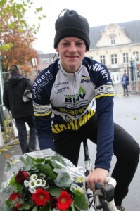 Ook bij de nieuwelingen was er Nederlands succes. Hier ging Thijs Wolsink er met de zege vandoor.