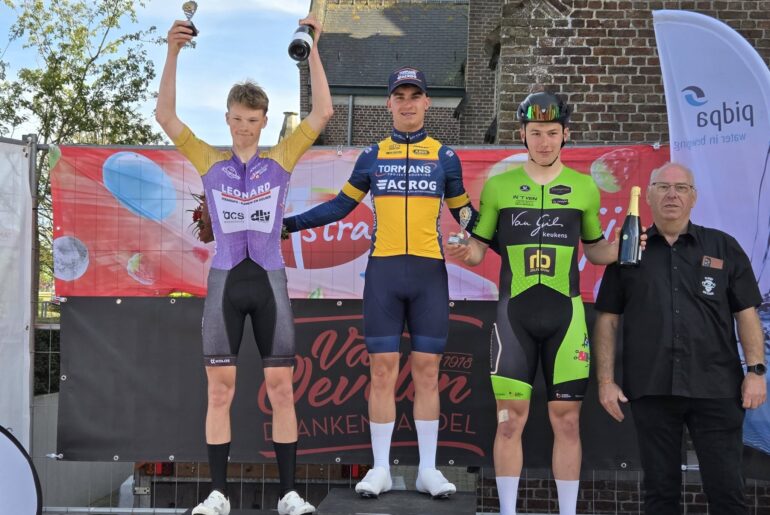 Delano Heeren heeft overtuigend de juniorenwedstrijd in het Belgische Essen op zijn naam geschreven. De renner van Acrog-Tormans was na bijna 100 kilometer koers in de sprint van een omvangrijke kopgroep de snelste en pakte zo de overwinning.