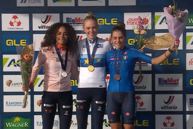 Fem van Empel is in het Franse Pont-Chateau opnieuw Europees kampioene veldrijden geworden. De wereldkampioene reed weg bij de concurrentie en kwam met ruime voorsprong alleen over de finish. Ceylin del Carmen Alvarado werd tweede en de Italiaanse Sara Casasola derde. Inge van der Heijden eindigde als vierde en Aniek van Alphen werd vijfde.